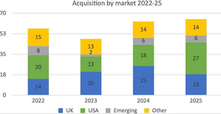 The five most acquisitive organisers in 2025 are all private equity-owned (we consider Emerald to be PE-owned, even though it is listed on the NYSE, as PE firm ONEX owns more than 90% of the shares).